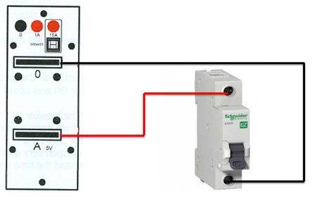 - Ghép nối mạch điện như sơ đồ, bên trái là các đầu ra khối nguồn của bộ tạo dòng, bên phải là Aptomat 1 pha. Đầu vào của Aptomat được nối với đầu ra có dòng điện của khối nguồn, đầu ra của Aptomat được nối với đầu ra 0 của khối nguồn.