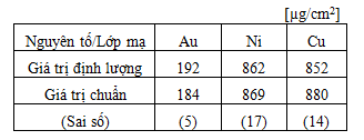 Mỗi lớp kim loại Au, Ni và Cu được định lượng bằng phương pháp FP, sử dụng đường kính chiếu xạ 1mm. Mẫu được phân tích trực tiếp mà không cần xử lý trước.
